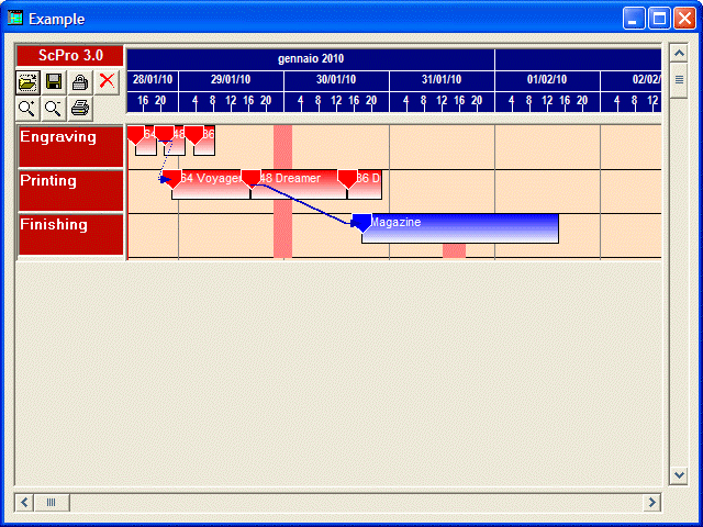 The ActiveX control ScPro.ocx is designed to build professional applications for job scheduling. This control ensures a fast and easy way to build and manage Gantt projects with few lines of code. The ActiveX control ScPro.ocx is designed to run in 32bit developments tools (most 32 bit OLE control containers). >>Some key features: - Over 50 properties, over 25 methods and over 10 events. - Open/Save of the gantt projects without writing any code - Flow chart management (Pert like logical links in the Gantt area) - Non-work period management: the time blocks automatically stretch on non-work periods - Time block overlapping management: the time blocks automatically avoid overlapping with other blocks - Find first free period method: a fast way to know if there is room for a block in a specific resource or period - Resource grouping management, tooltip personalization, different gantt behavior settings and much more. >>How to use the ActiveX control: - read the license.txt agreement - register the ScPro.ocx with regsvr32.exe - view the Vb6 example (in the ScProSamples directory) - view the HTML guide (in the ScProHelp directory) - remember that the maximun time blocks will be limited to 10 until you type the register number (order required) - dependencies: msvbvm60.dll (included) >>How to order the ActiveX control: - click on the buy button of the requested ActiveX - write your data in the order - once we receive your order, we will send to you an email with the register number - type the received register number in the register form (it can be displayed from the About Box) >>Limits of the Scheduler Lite edition: - maximun 1000 time blocks once you register - if you need to manage more then 1000 time blocks, you should buy the Scheduler Pro edition |
